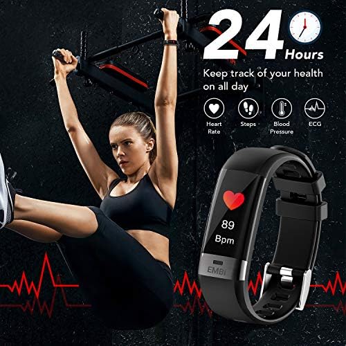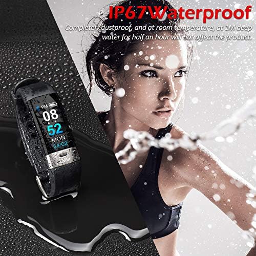 ⌚ Colour display & IP67 protection – The EMBi bracelet has a 0.96 inch liquid crystal display (LCD). The display of the time and date can be individually adjusted. There are 3 different display designs available in the menu. The fitness bracelet is IP67 certified and therefore dust and waterproof, so you can wear the fitness watch even in rain, when washing hands or in the swimming pool.