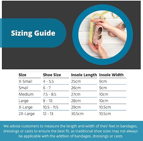 From the beginning, Darco always focuses on improving the quality of life for patients 30 years ago. Sensitive feet need protection and require proper care. The all-round healing shoe is a clever solution for wound care, arthritis and diabetic care of the foot. The closed toe boot is made of breathable lightweight fabric and free from protruding seams with wide access for easy handling. Thanks to the unique sandwich technology, the sole is ribbed, stable yet padded and non-slip and shock absorbing. It is available in a variety of sizes and can be worn left or right. Please pay attention when choosing the required size, this is not a normal shoe, but a medical device. Make sure you have measured your foot width and length and make sure there is extra space in the shoe for any bandages. Please refer to the size chart that provides all measurements of the shoe. The shoe size shown is for reference only. If possible, measure with weight on the foot, if possible, standing as the feet can extend considerably while standing.