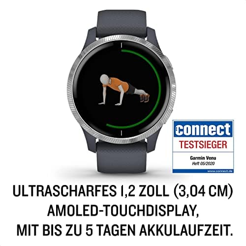 Garmin Venu Waterproof GPS Fitness Smart Watch With AMOLED Display, Training Plans And Animated Exercises, German Version 20 sports apps, heart rate monitoring, 5-day battery life, non-contact payment, music player.