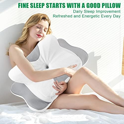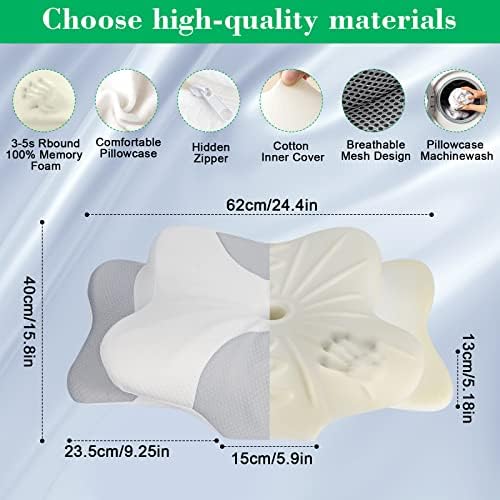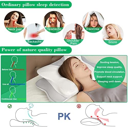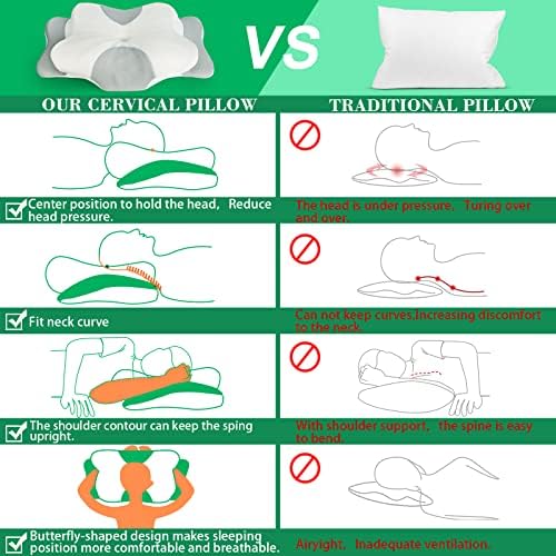 REDUCE DISCOMFORT AND PAIN The proven contour design perfectly supports and aligns the head, neck, shoulder and back. The slope prevents the head from rolling out of a stable position. Brings a reduction of stress in the cervical spine and spine. Improve sleep and relieve your neck and shoulder pain, discomfort. The butterfly design allows you to switch between positions comfortably. You will wake up refreshed.
