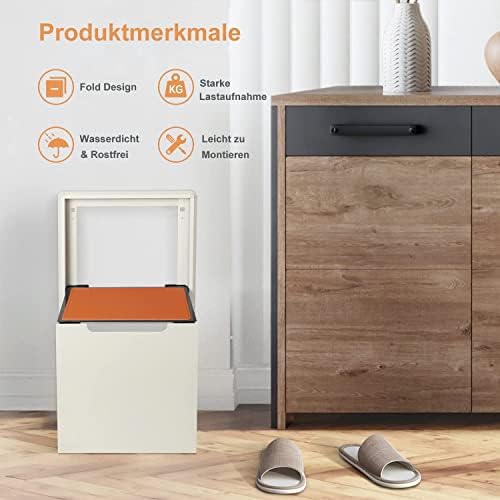 Platzsparend: Klappsitz-Wandmontage für kleine Wohnungen, im zusammengeklappten Zustand nur 40 mm dick, nimmt er nicht viel Platz ein und lässt sich leicht hinter Türen verstecken.