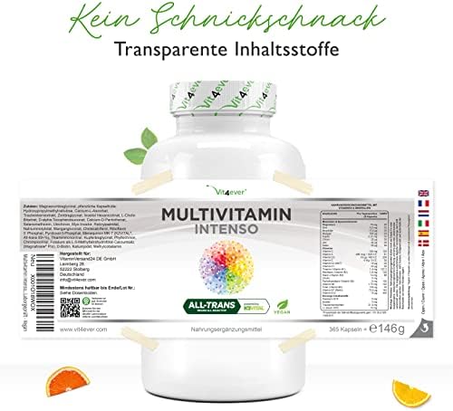 Vegan and without undesirable additives: our multivitamin capsules contain no unwanted additives and are 100% vegan. The capsules are free from magnesium stearate, flavours, dyes, stabilisers, gelatin and of course GMO-free, lactose-free, gluten-free and without preservatives.