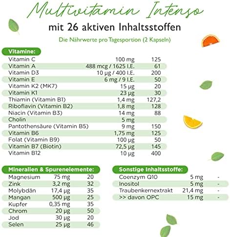 Premium complex: In addition to the use of selected premium raw materials (branded raw materials) in the form of chelate compounds (zinc, magnesium), bioactive forms and co-factors, our complex includes a special combination of a seamless vitamin B complex, as well as all essential and fat-soluble vitamins (A, D3, K1 + K2, E). Perfectly coordinated formula to use full synergy effects.