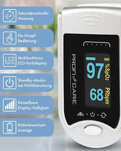 3-in-1-Pulsoximeter zur Bestimmung: – der arteriellen Sauerstoffsättigung (SpO2) – der Herzfrequenz (Puls) – des Perfusionsindex (PI) der Durchblutung in % zur Kontrolle und regelmäßigen Überwachung. Auch für den Einsatz im Krankenhaus/Reha, beim Sport oder zur unterstützenden medizinischen B-Behandlung: Besonders geeignet bei Herzinsuffizienz, chronischen Lungenerkrankungen, COPD, Schlafapnoe oder Asthma in Sekundenschnelle, einfache und schmerzfreie Messung. Dank kompakter Beschaffenheit und praktischer Gürteltasche für zu Hause und unterwegs geeignet. Auch für Sportarten in großen Höhen geeignet (z. B. Bergsteigen, Skifahren, Fahren und Sport. Luftfrei) Auto Rotate – Automatische Displaydrehung Leicht ablesbares Multifunktions-LCD-Farbdisplay – Sauerstoffsättigung (%SpO2) – Herzfrequenz (PRbpm) – Zirkulation (PI%) – Pulswelle (grafische Pulsanzeige) – Intensität der P-Anwendungen – A. Abschaltautomatik / Batteriewechselanzeige – Messung fehlerhaft Displayhelligkeit einstellbar – 5 Stufen – direkte Sonneneinstrahlung / dunkle Umgebung – geringer Stromverbrauch Zubehör: Stromversorgung Gürteltasche: 2 x 1,5 V (AAA) (Batterien nicht im Lieferumfang enthalten)