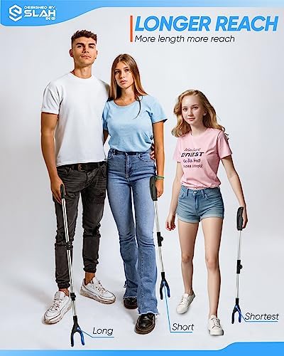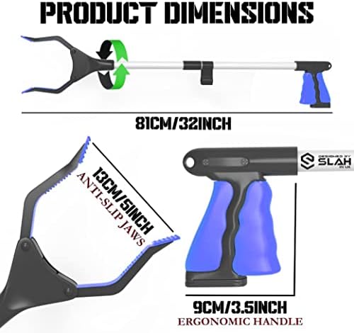 SLAH Grabber Tongs for Seniors 32 Inch Aluminium Rubbish Tongs, Rotatable Waste Gripper, Non-Slip Rubber Gripper, Foldable Rubbish Tongs for Children, Long Grabber Arm, Grabbing Aid for People with Disability